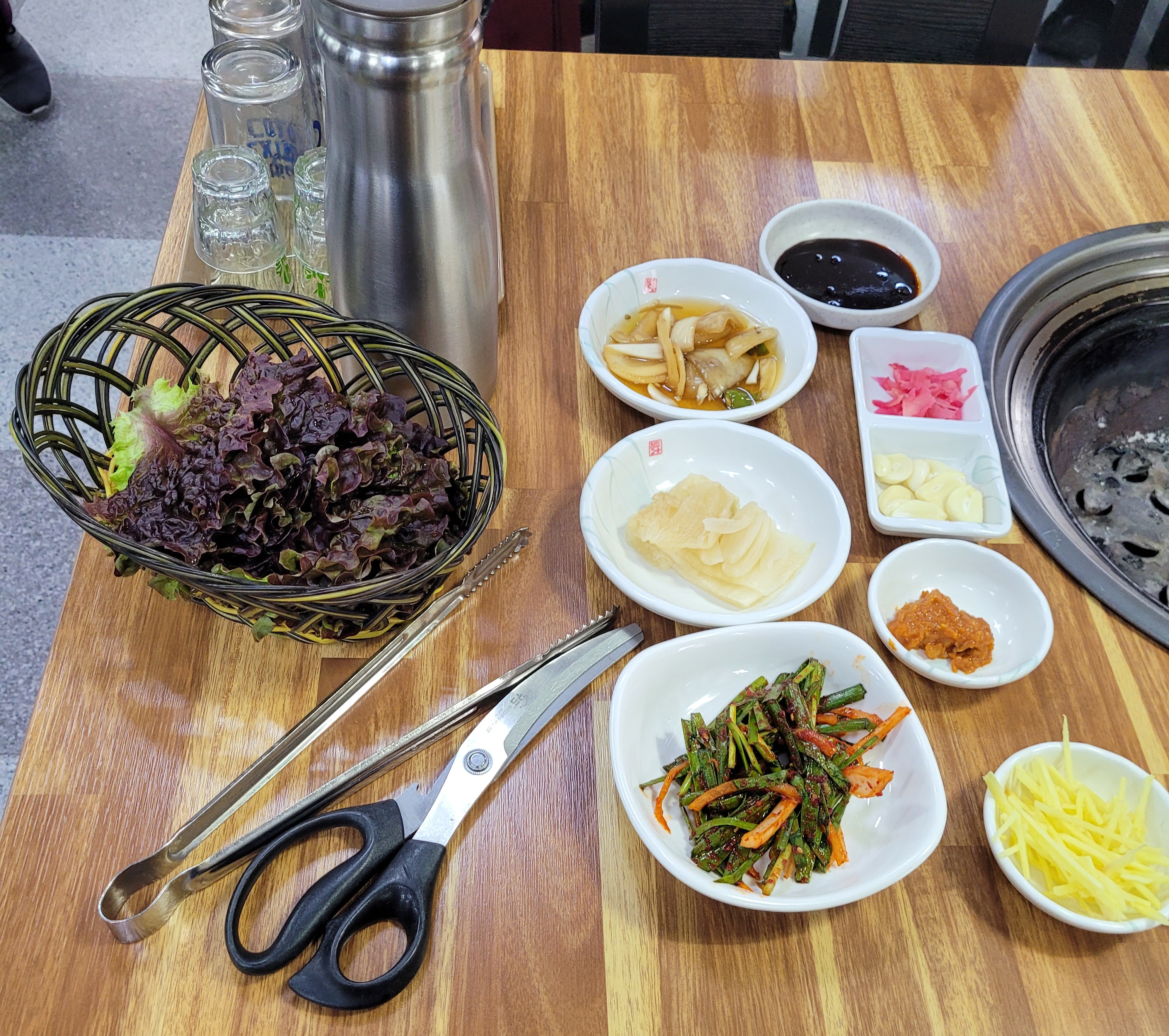 셀프코너입니다. 식재료가 모두 싱싱해 보였습니다.저는 양파, 생강, 채소 등을 좋아해서 오늘 많이 리필해서 먹었습니다.